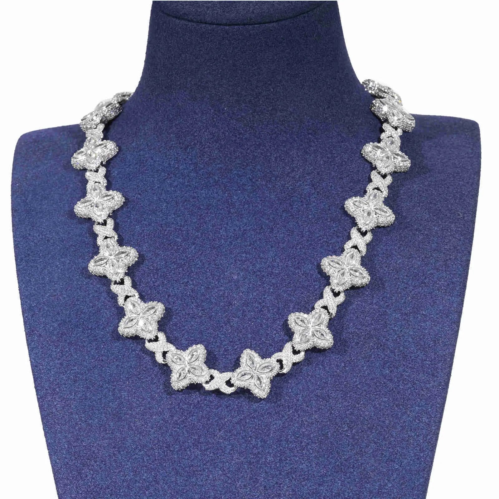 18" Flower Necklace VVS Moissanite Iced Out Cuban Link Chain