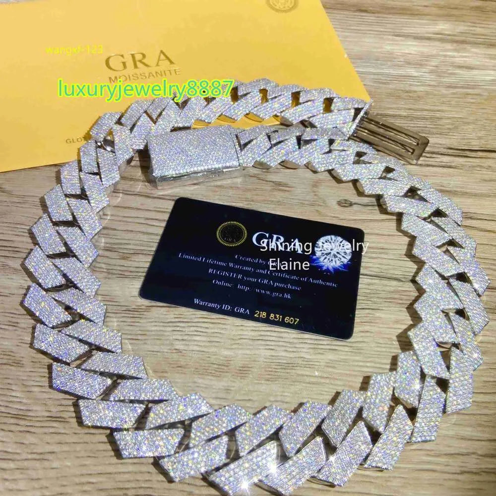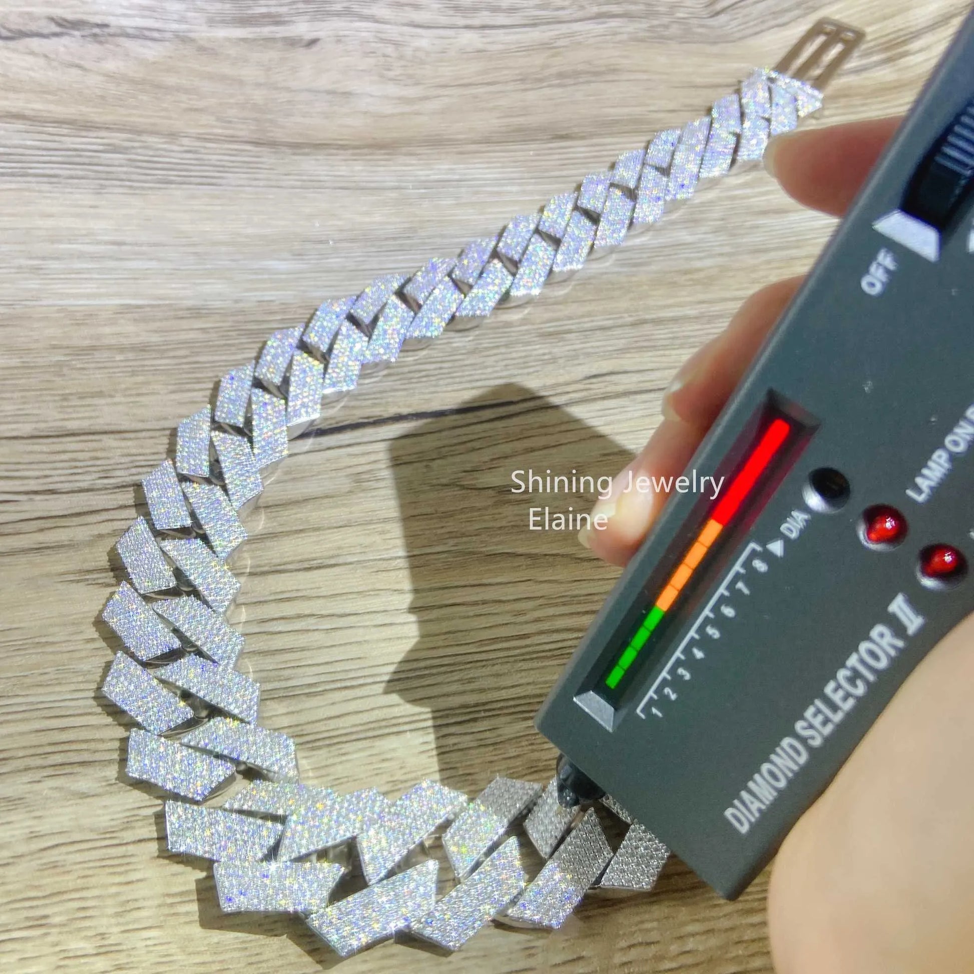 20" Silver Necklace VVS Moissanite Iced Out Cuban Link Chain