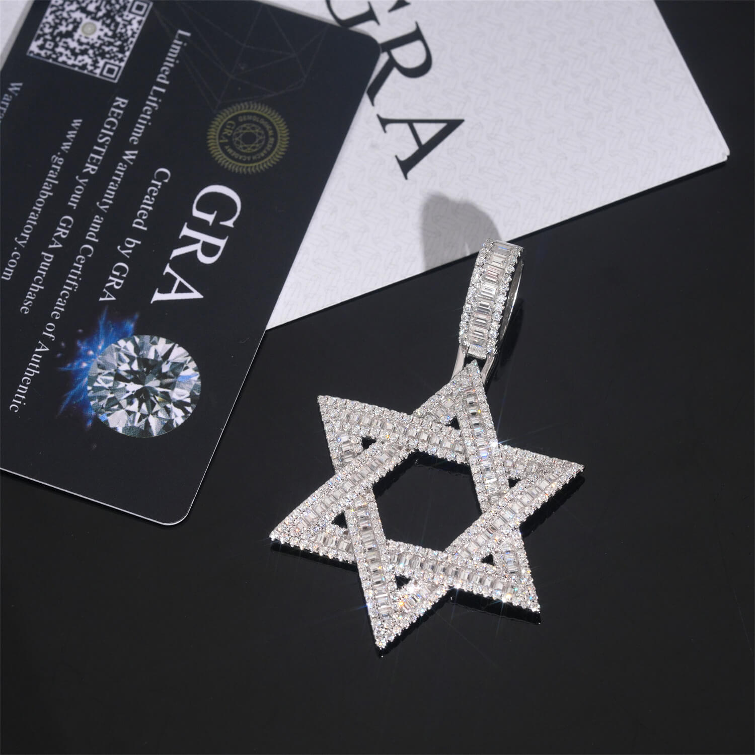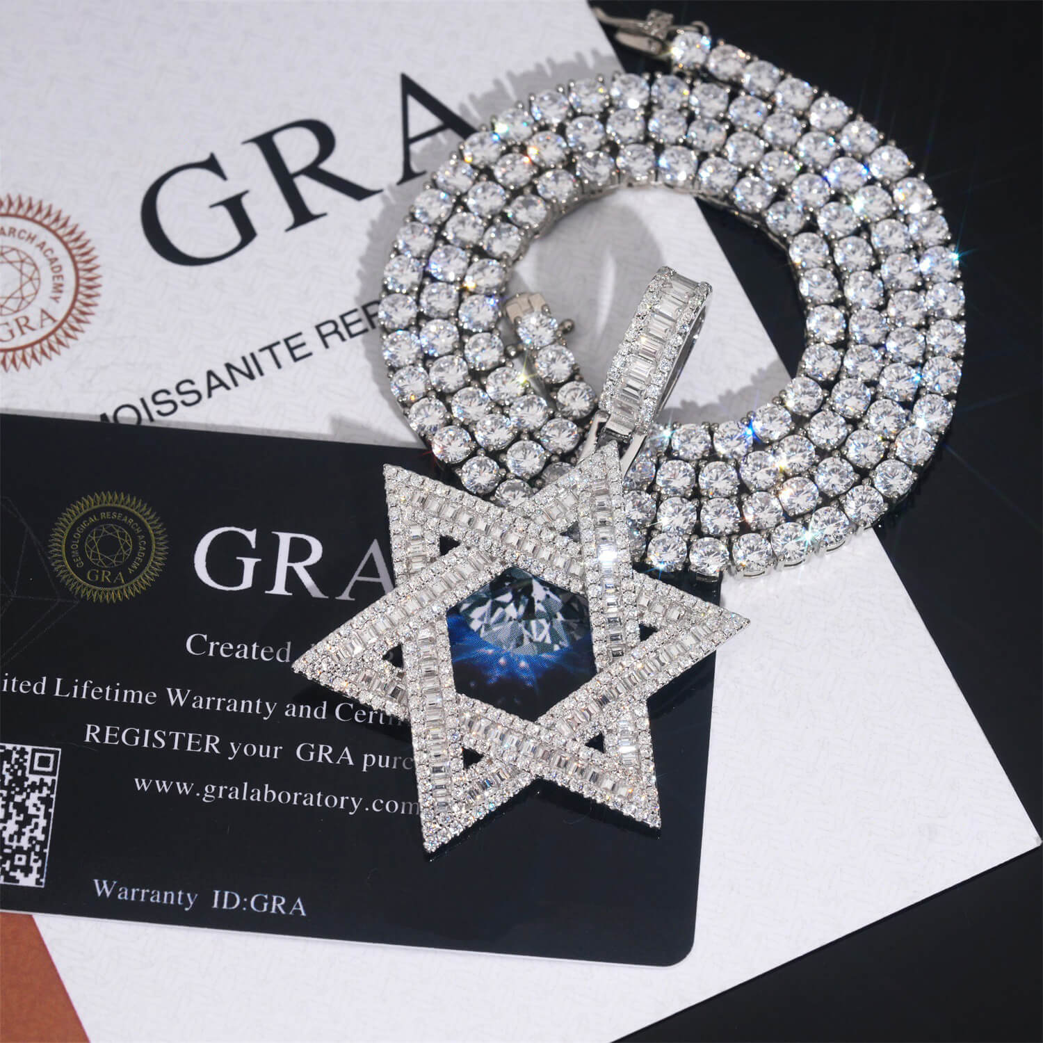 MOISSANITE Iced Out Magen Star Of David Jewish Pendant