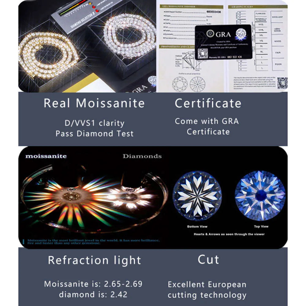 18" 4mm Mossanite Necklace Tennis Chain Sterling Silver Hip Hop VVS
