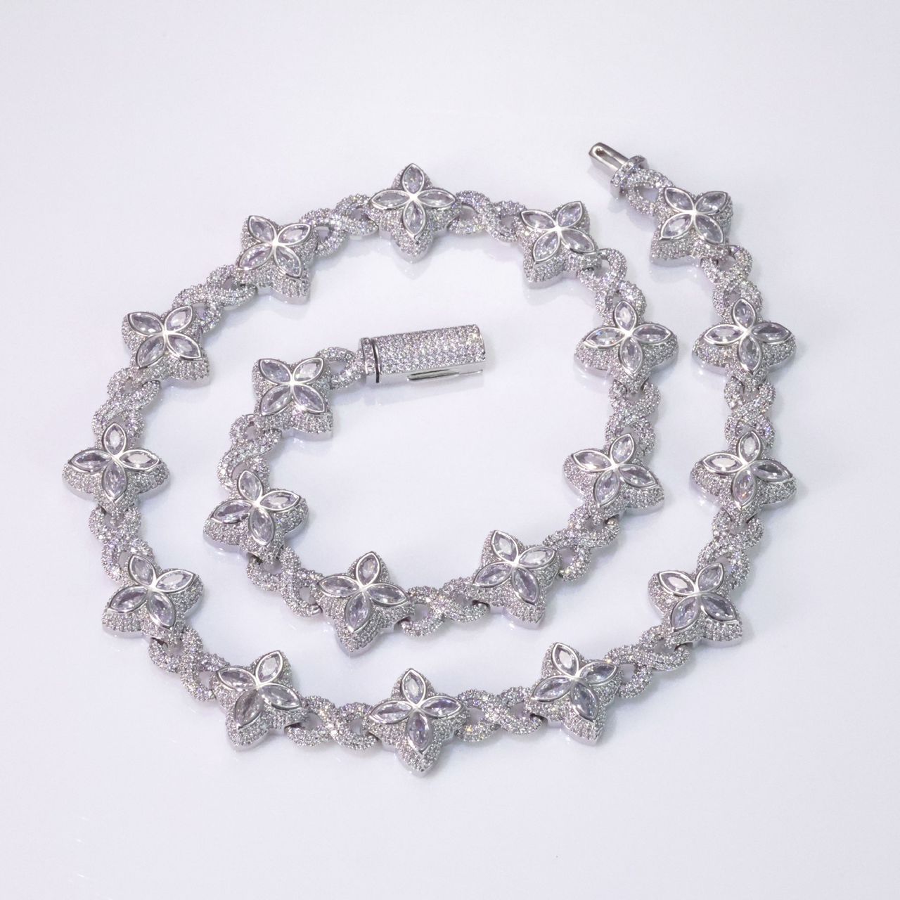 18" Vvs Moissanite Necklace Cuban Chain 925 Sterling Silver Hip Hop Jewelry Marquise Flower Design Cuban Chain