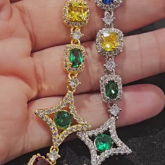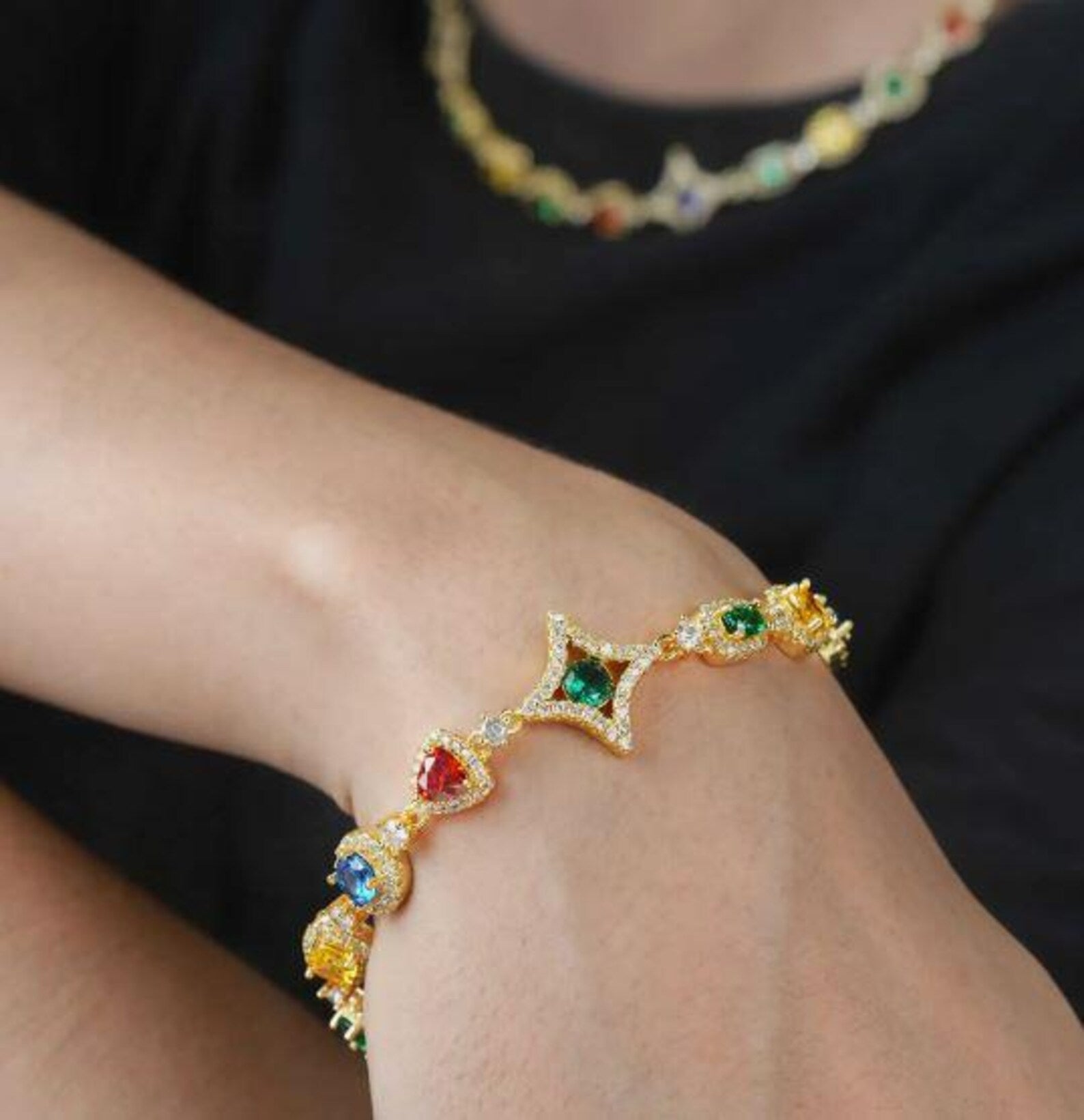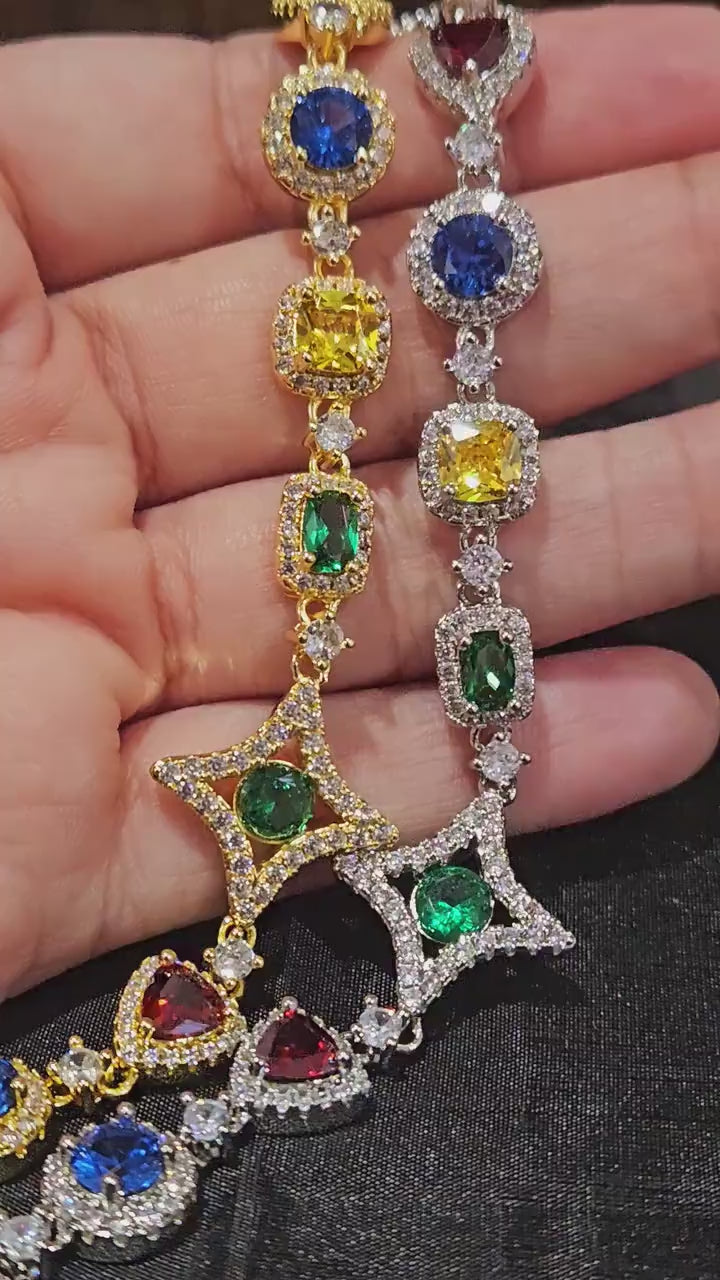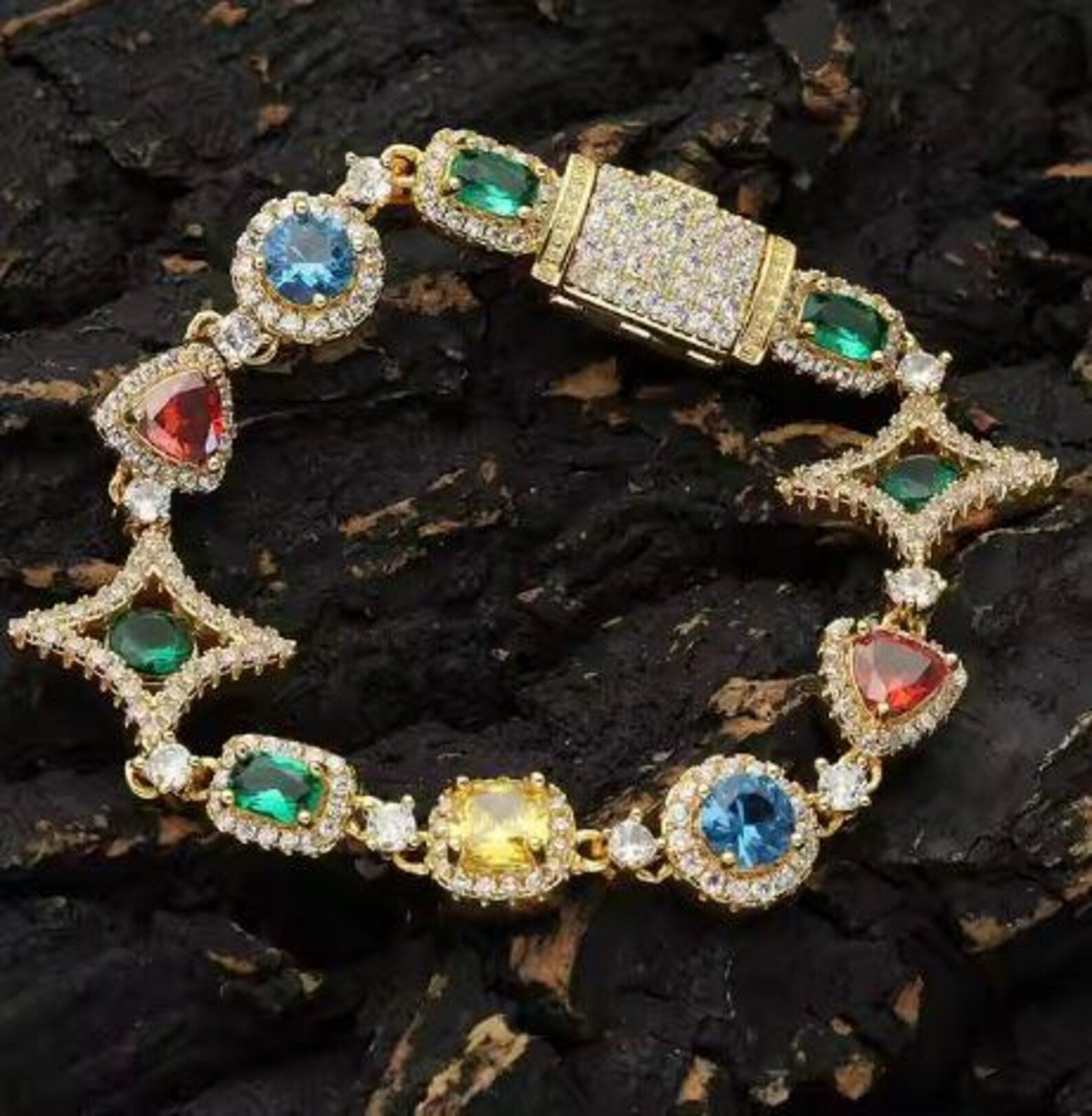 18k Yellow /White Gold Filled Bracelet with Multicolor Lab Simulated Diamonds Stones with 18k stamped.