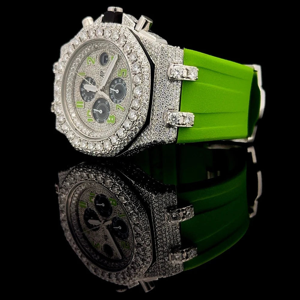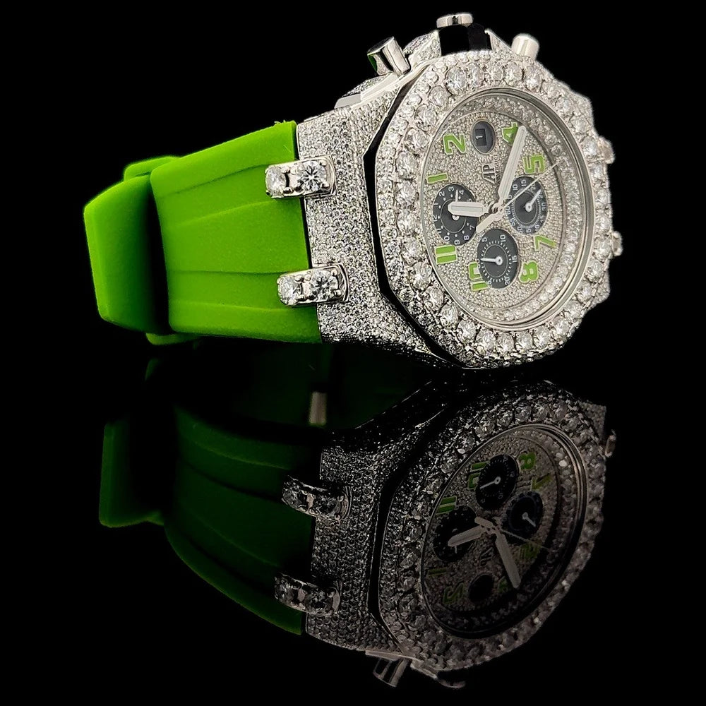 Description Stunning Parrot Silicon Strap Fully Face Dial Moissanite Diamond Watch For Men Our Moissanite Watches are the perfect watch for those who appreciate the finer things in life and want to make a statement with their timepiece.