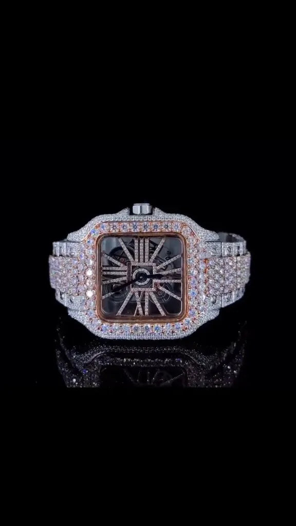 8" Iced Out Diamond Moissanite Bronze Watch