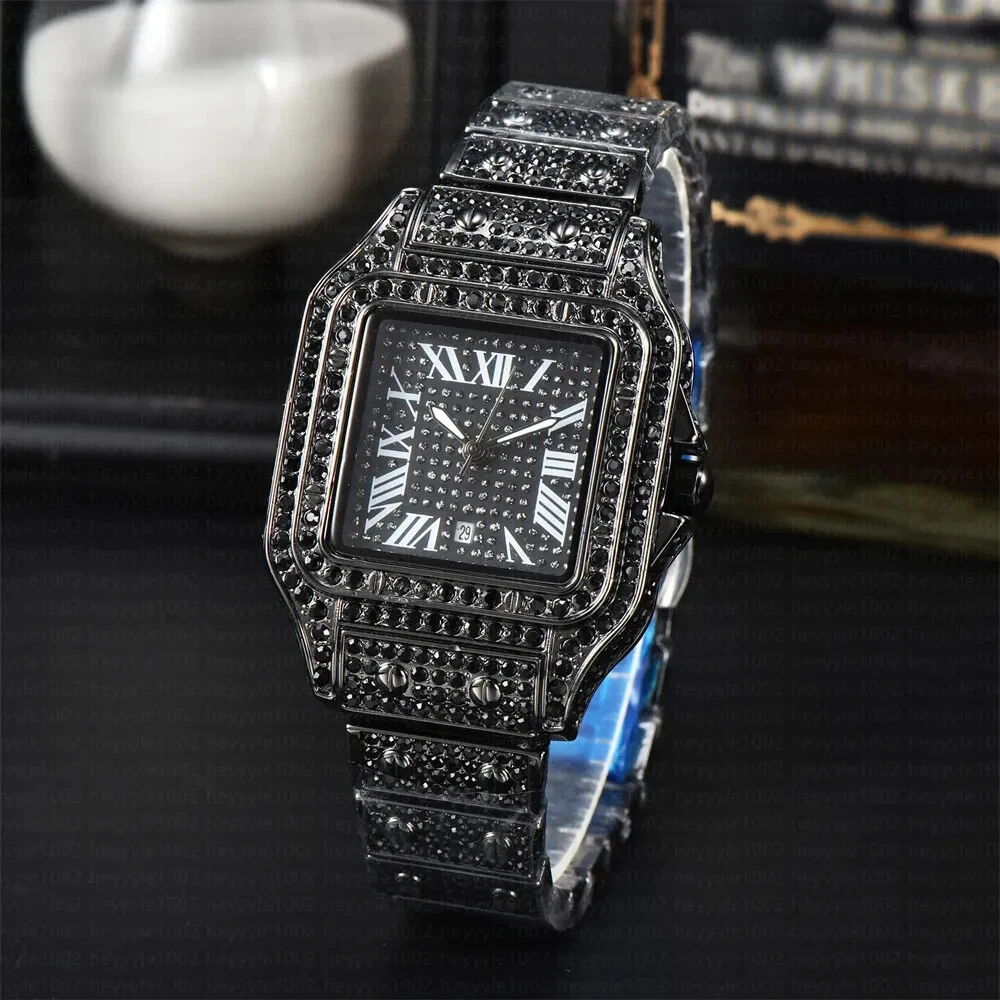 8" Iced Out Diamond Moissanite Black Watch