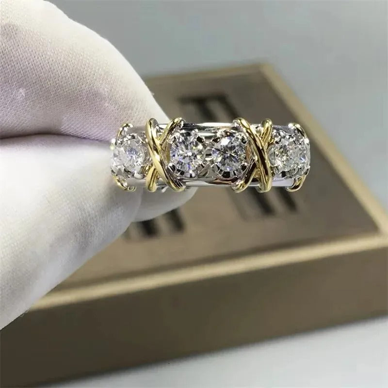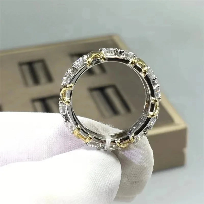 8" Ring 14K White Gold VVS Iced Out Diamond Moissanite