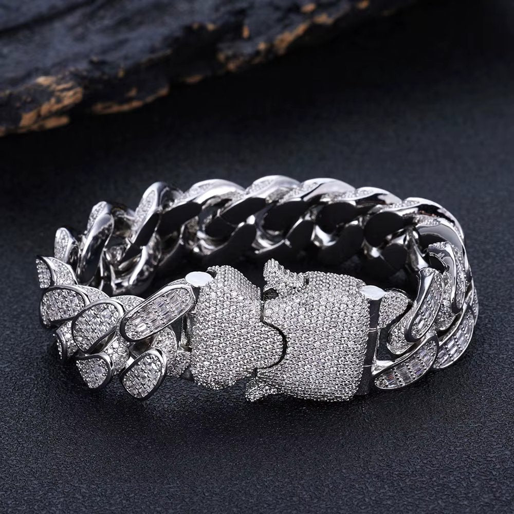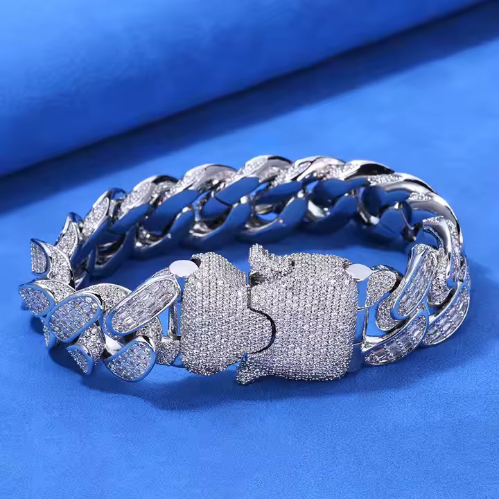 9" Bracelet 925 Sterling Silver Gold Plated 18mm VVS Moissanite LINK