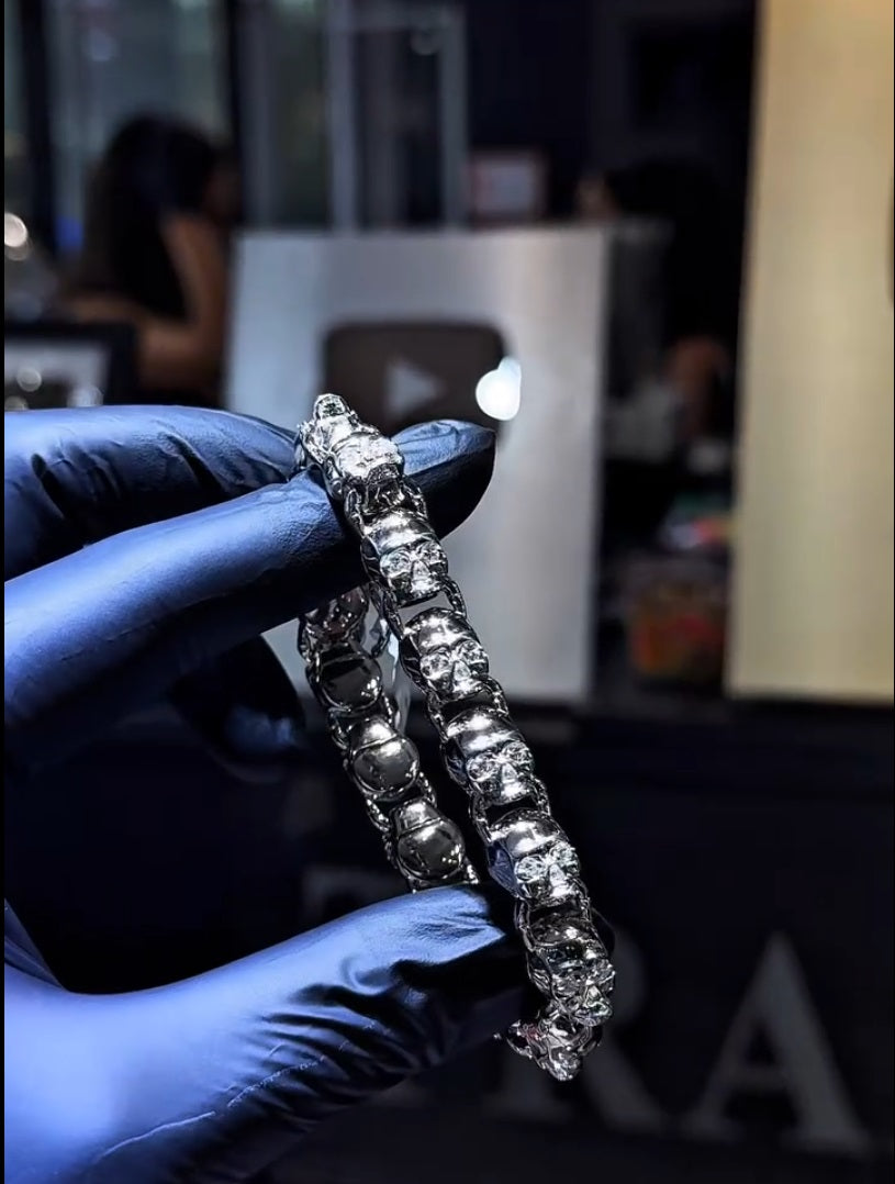 8" VVS Moissanite Diamonds Skull Bracelet