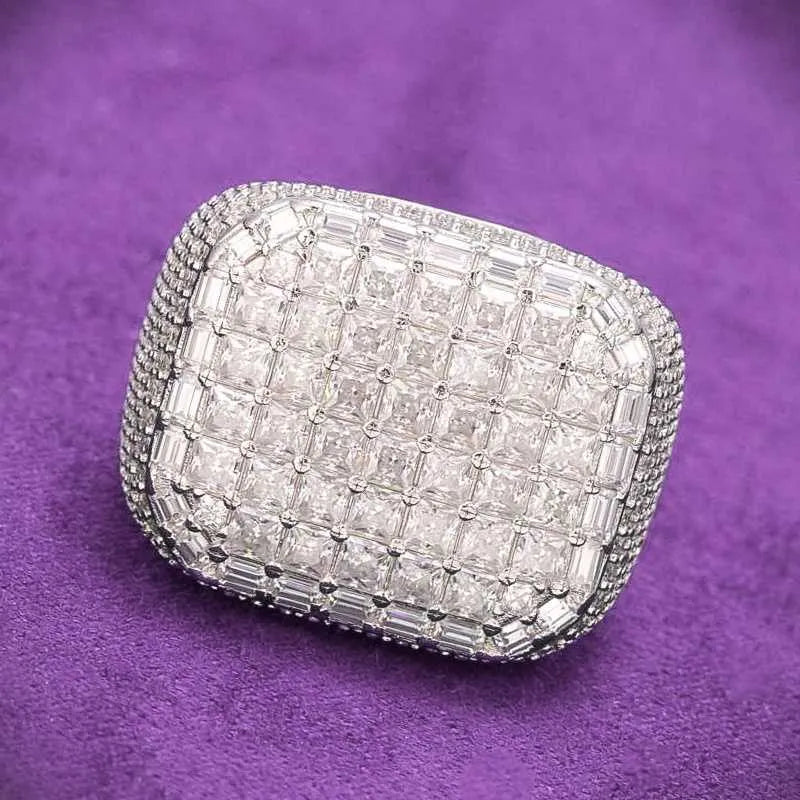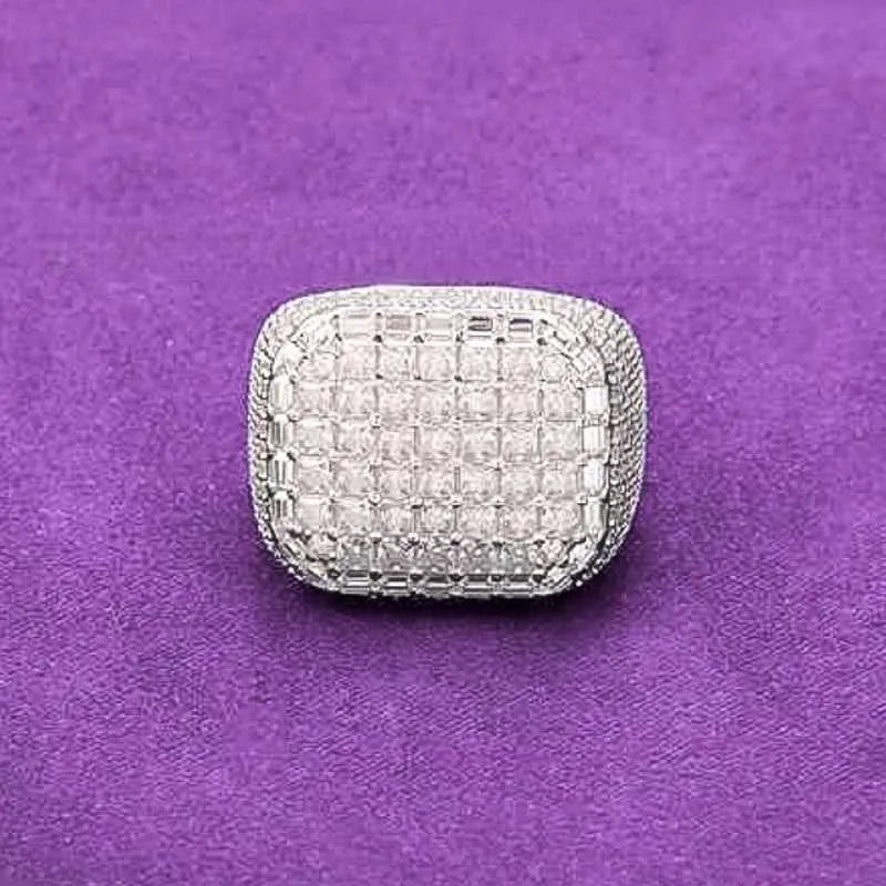 9" Ring 14K White Gold VVS Iced Out Diamond Moissanite