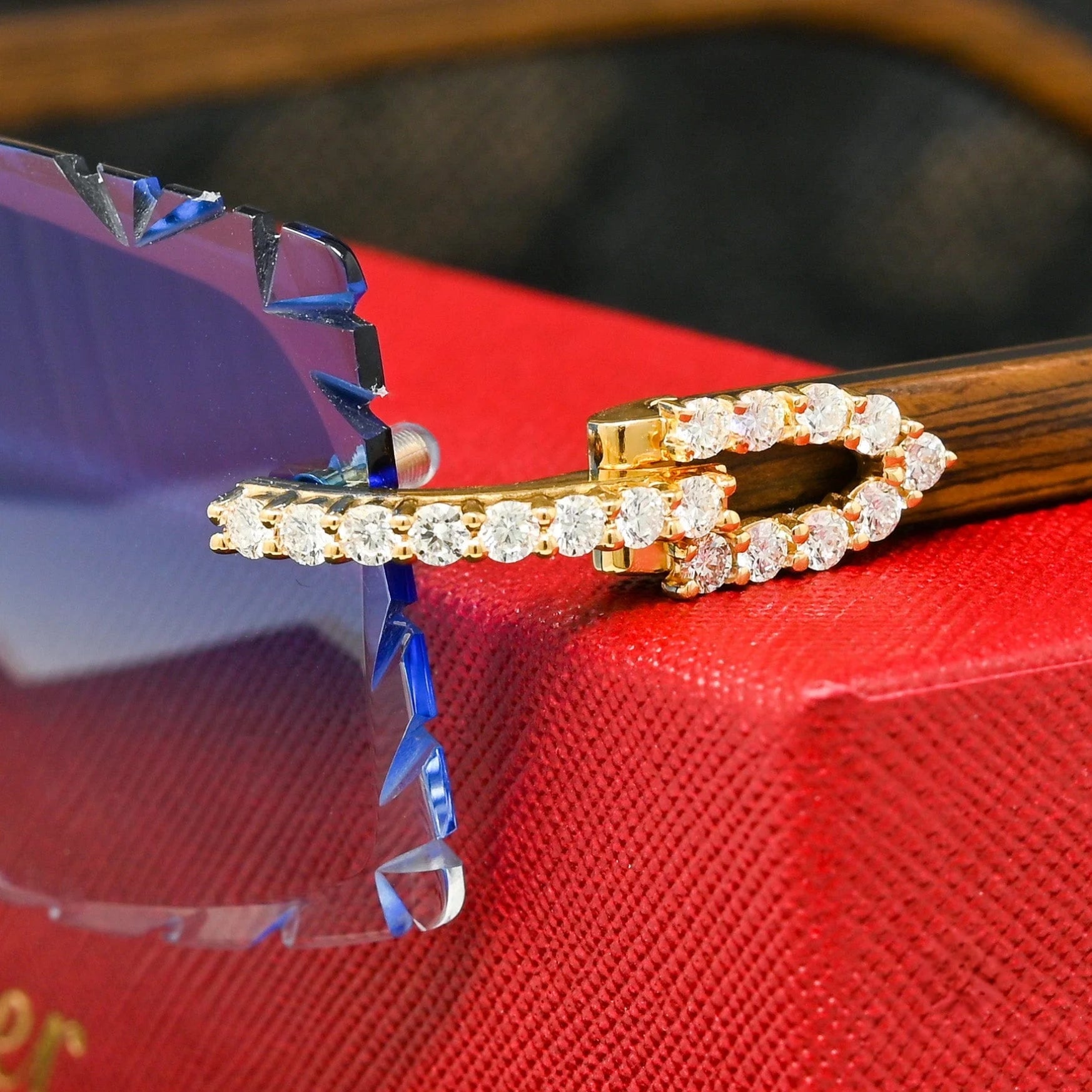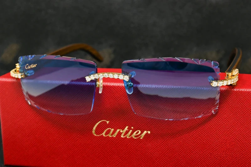Cartier Blue Glasses Iced Out Diamond Rimless