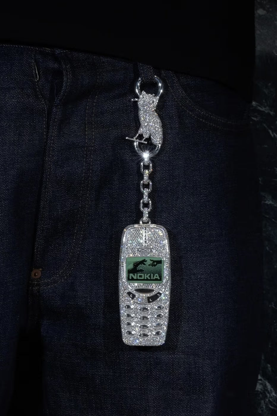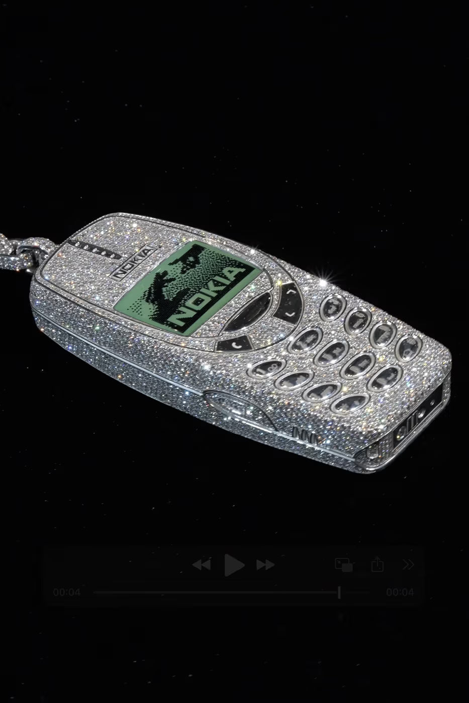 Solid 925 sterling silver VVS Moissanite Nokia Burner Phone Pendant with a compartment that opens up from the back of the pendant.