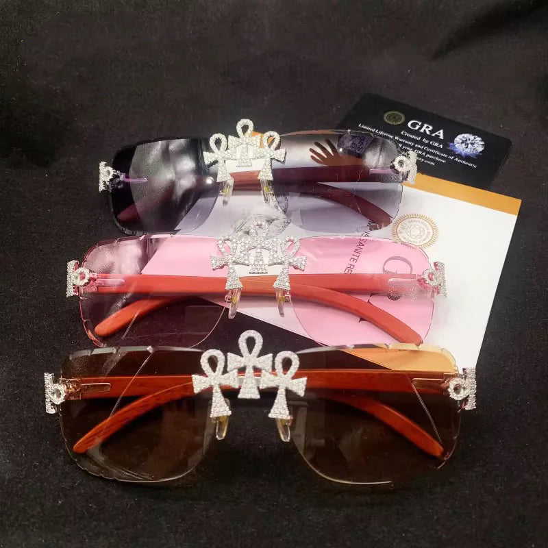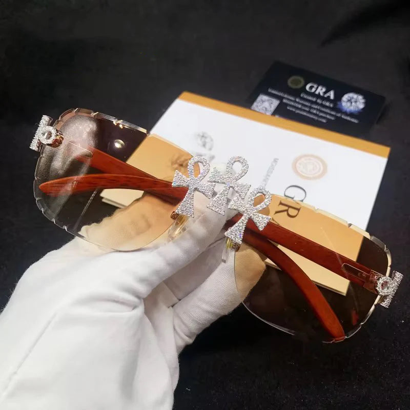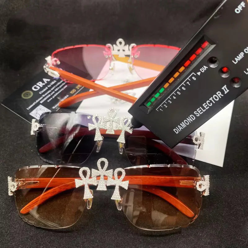 These moissanite sunglasses feature polarized lenses with UV protection and are offered in various stylish shades. These moissanite sunglasses are adorned with brilliant cut, colorless VVS moissanite diamonds. Every diamond on these sunglasses is certified to pass the diamond tester.