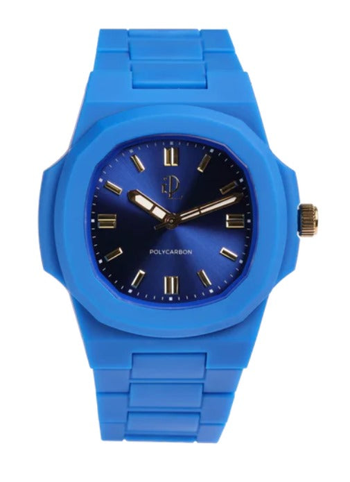 - Blue dial, indexes, gold hands and stainless steel with LumiNova white mineral glass with anti-glare finish