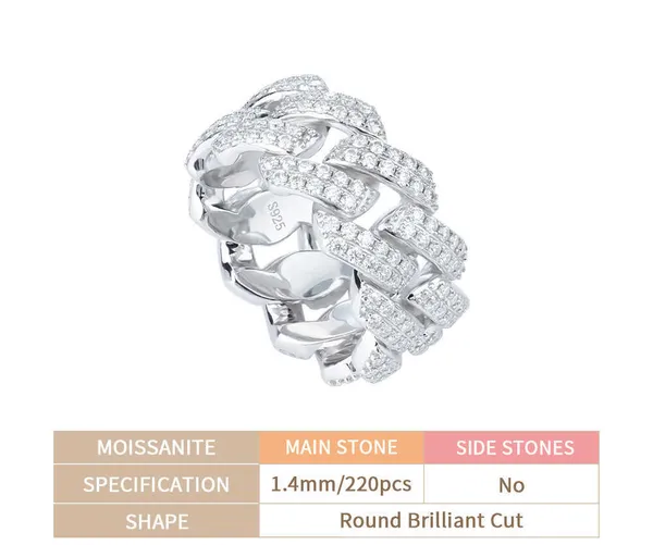 8" Ring Iced Out Diamond Moissanite Gold Plated 925 Sterling Silver