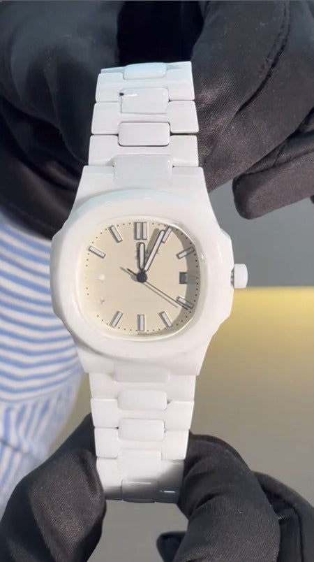 Introducing the stunning Nautilus 5711/1A-018 Patek Philippe with a 40mm rubber strap and a mesmerizing pink dial that captures the essence of luxury and sophistication. This masterpiece perfectly balances elegance and sportiness, making it an ideal choice for both formal events and casual outings. The watch is designed to offer the same high-class look and feel as the original at a fraction of the cost, providing an accessible way for everyone to enjoy the timeless style of a Patek Philippe watch.